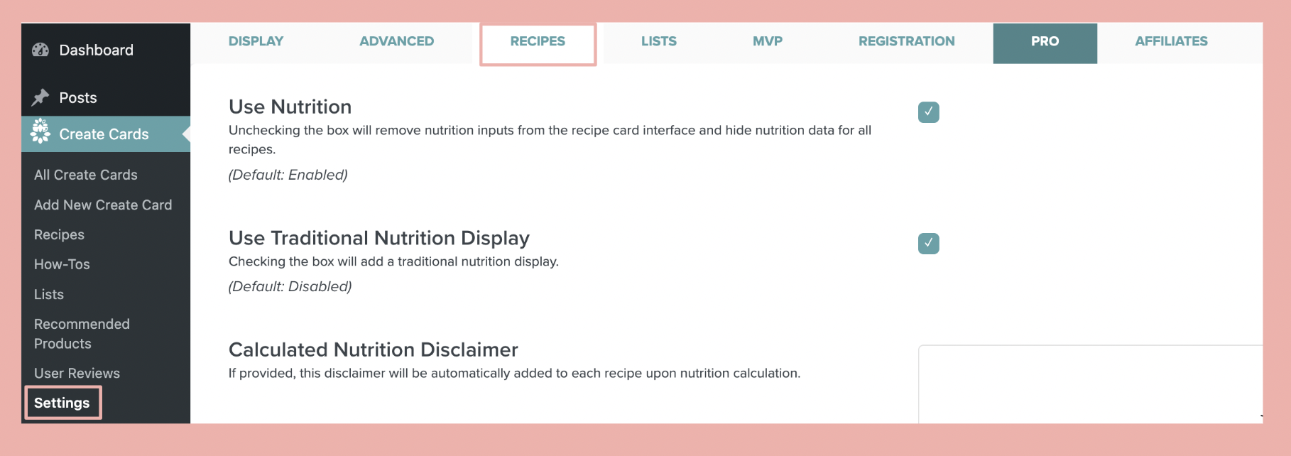 Next, you will want to choose how nutrition information will display