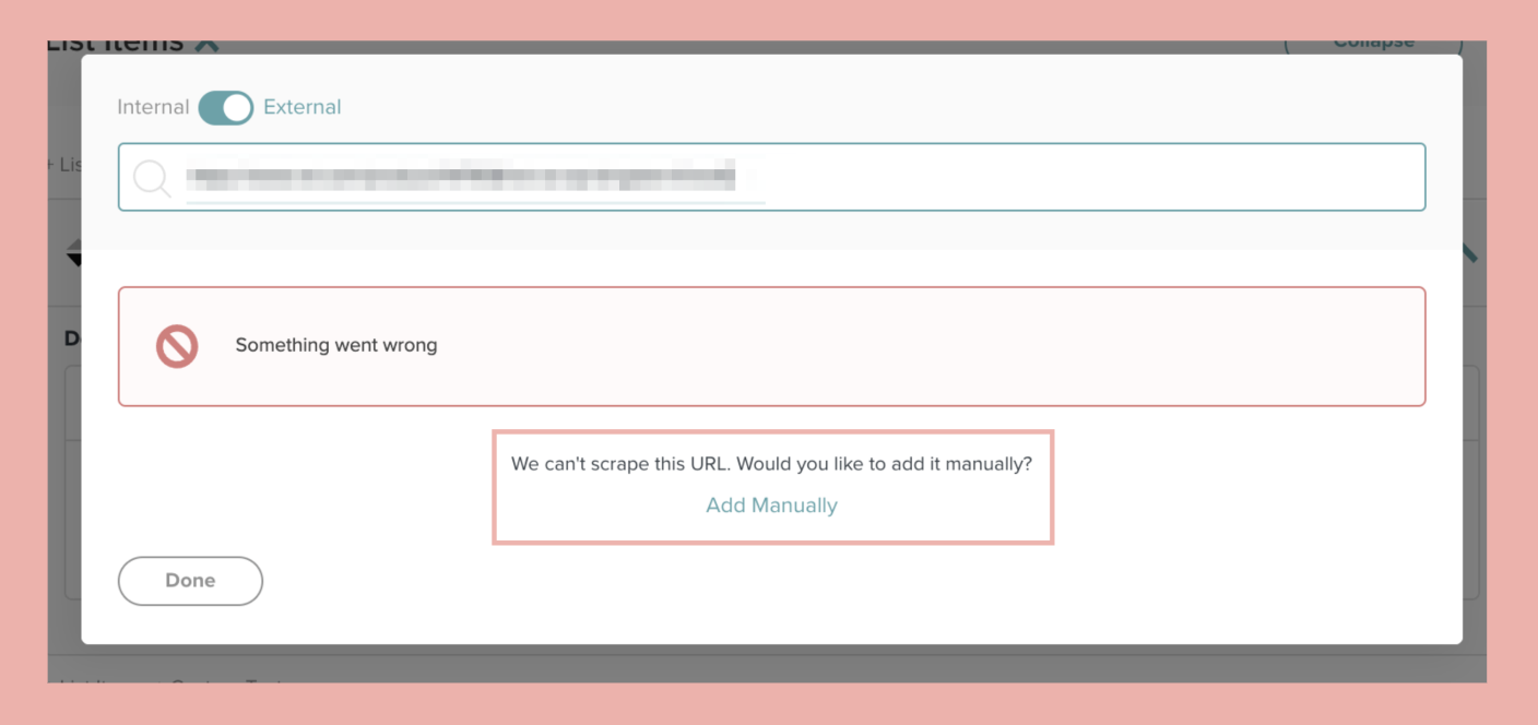After adding the external link, if Create can't scrape information from the link, you can click the “Add Manually” button: