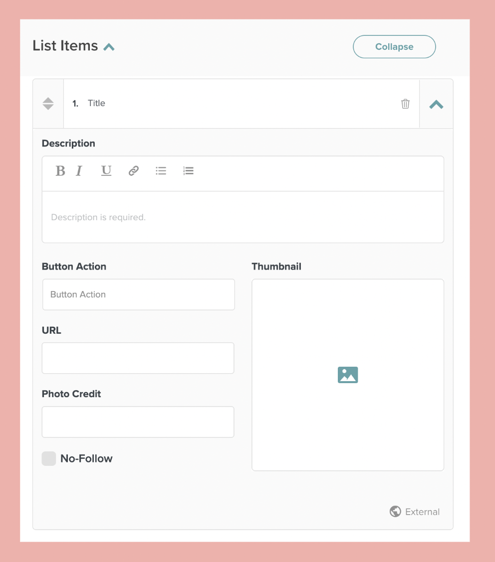 Often, this issue happens because of security permissions set from the external site itself. Some sites may block third-party tools from scraping information from their links, meaning that Create cannot pull in a title, description, or featured image.