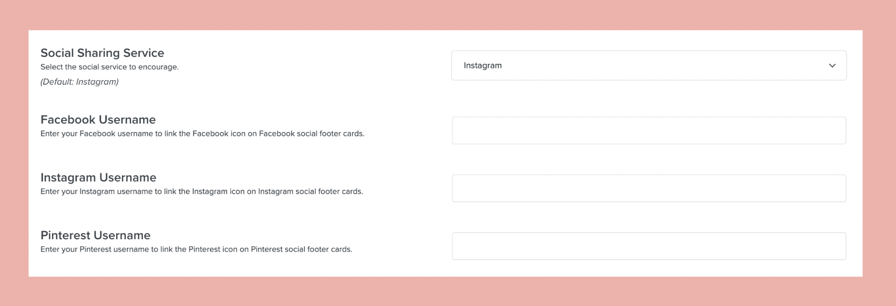 Step 2: Choose which social sharing service you would like to direct readers to, and add in your username(s).