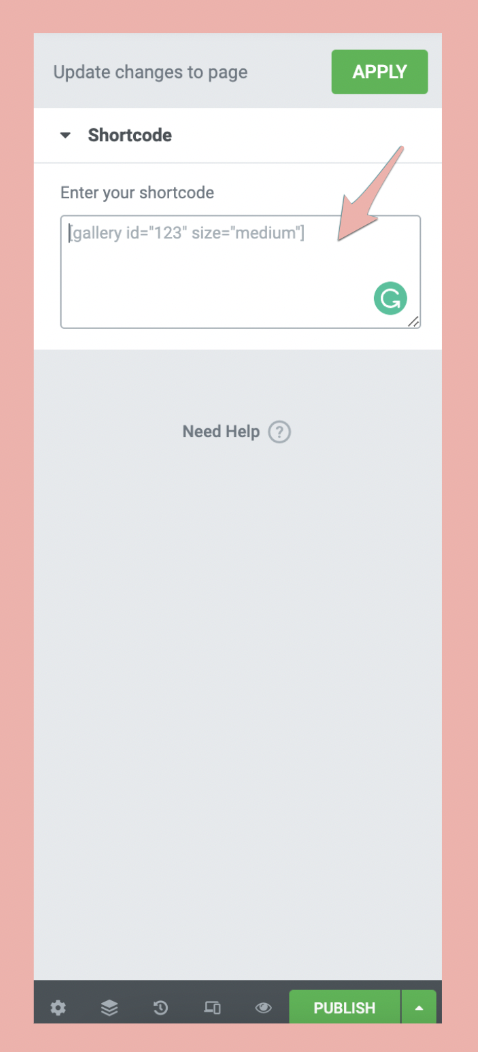 Step 3: In the sidebar, paste the Create shortcode you copied into the field labeled "Enter your shortcode." Click Apply.