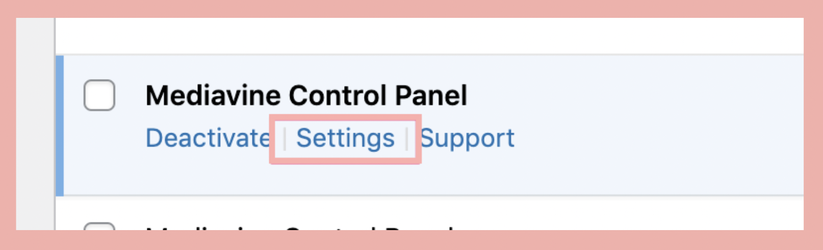 Step 1: Go into your WordPress admin and navigate to Plugins > Installed Plugins > Mediavine Control Panel > Settings.
